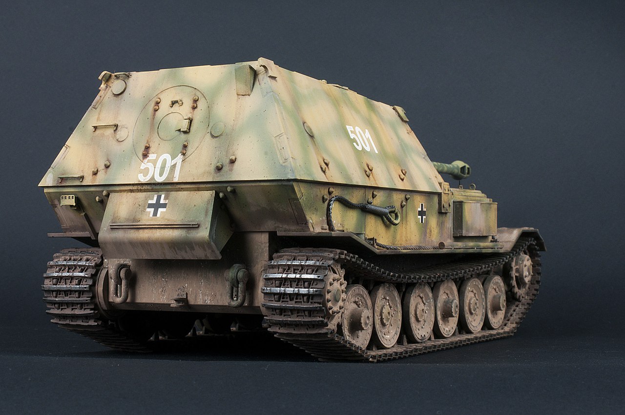Историческая справка: Немецкая тяжёлая самоходно-артиллерийская установка периода Второй мировой войны класса истребителей танков. Также называлась «Элефант», 8,8 cm StuK 43 Sfl L/71 Panzerjäger Tiger, Sturmkanone mit 8,8 cm StuK 43 и Sd.Kfz.184.