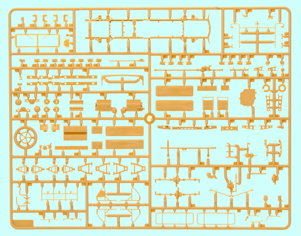 Детализированная подвеска, проработанные мосты, карданы, рычаги, стабилизаторы, пружины, проработанная несущая рама выполнена единой деталью, выхлопная система выполнена отдельными деталями.