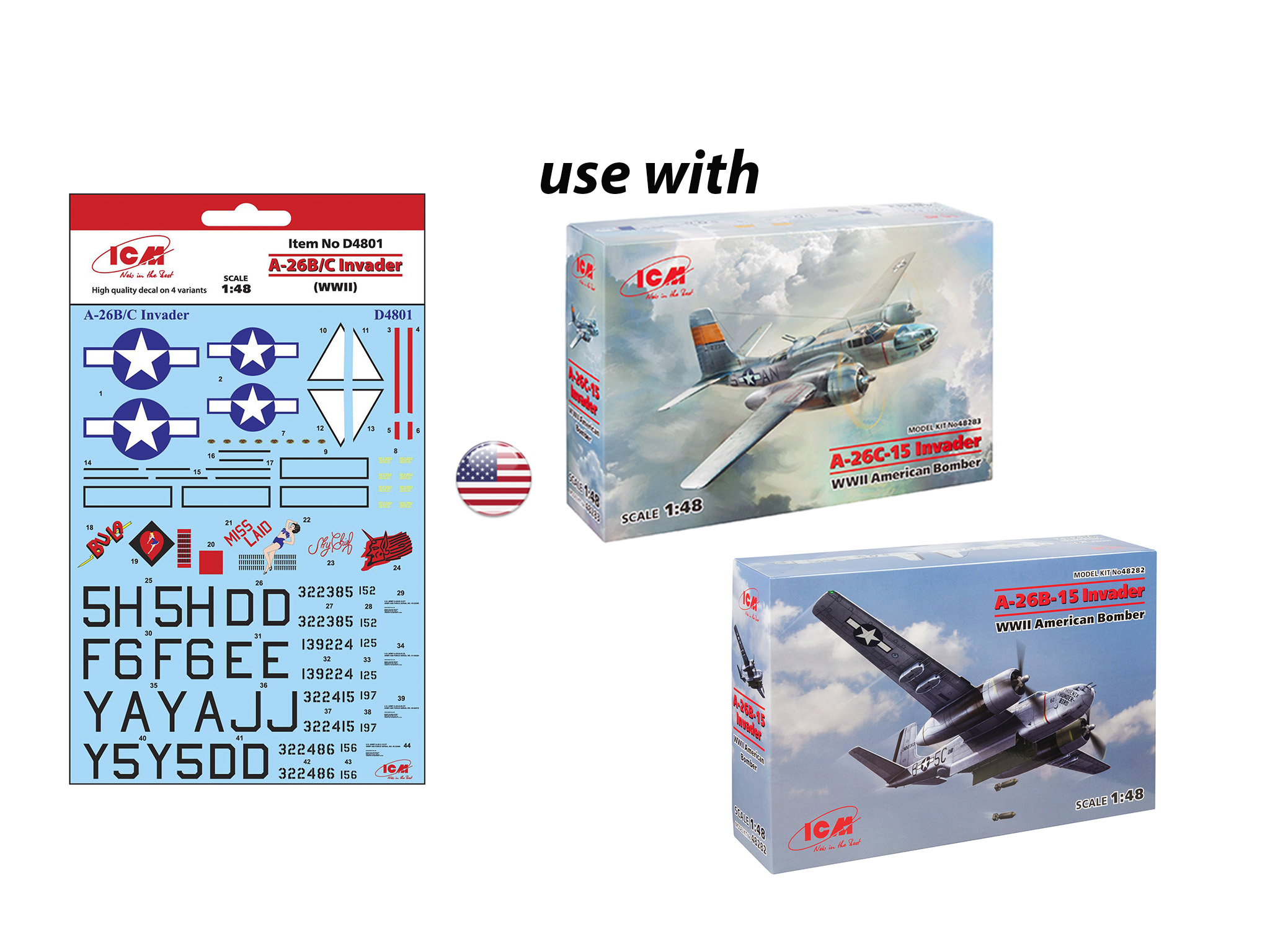 D4801 Декаль A-26B/C Инвайдер (II MB) ICM в Иваново, купить в интернет-магазине, цены, фото