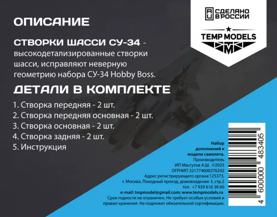 48340TMP СТВОРКИ ШАССИ СУ-34 Temp Models в Иваново, купить в интернет-магазине, цены, фото