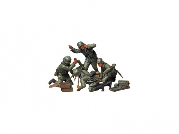 Сборная модель из пластика. Расчёт немецких миномётчиков в форме 1936 года в действии с 80-мм миномётом.