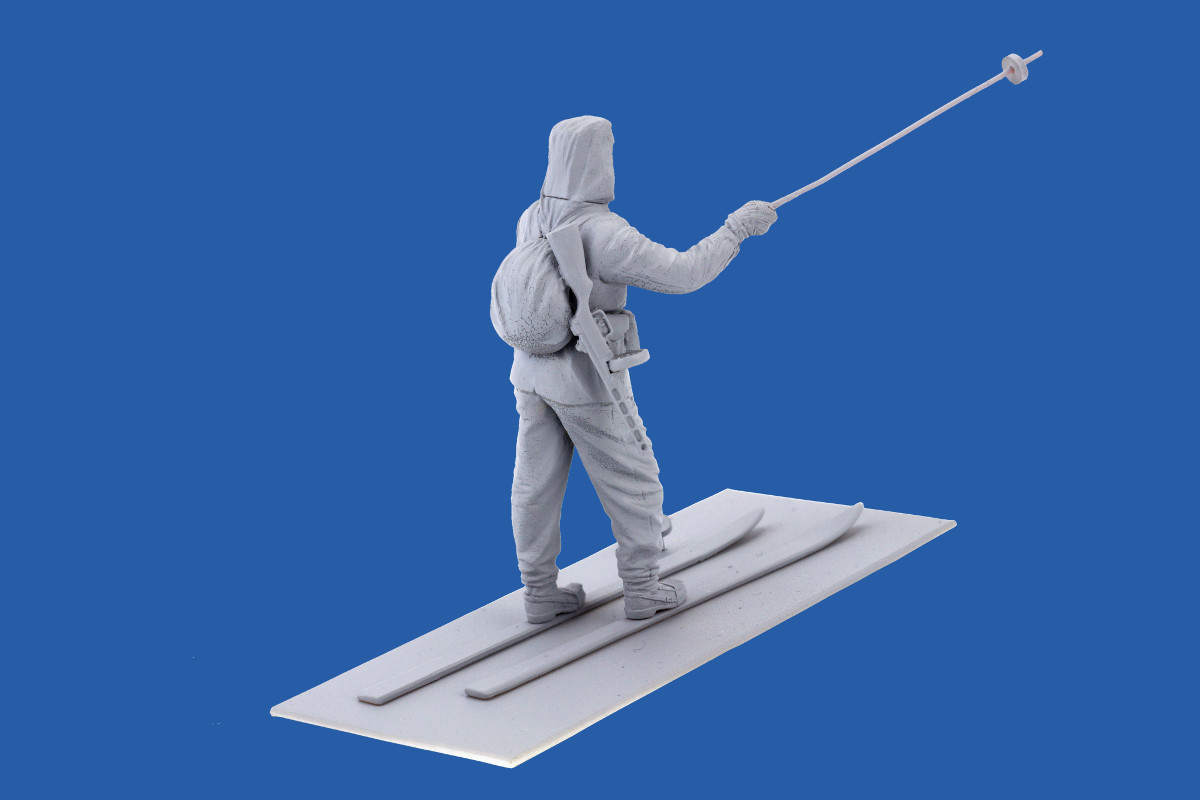 Детально проработанные головные уборы, личное оружие, амуниция, лыжи с лыжными палками и другие подробности.