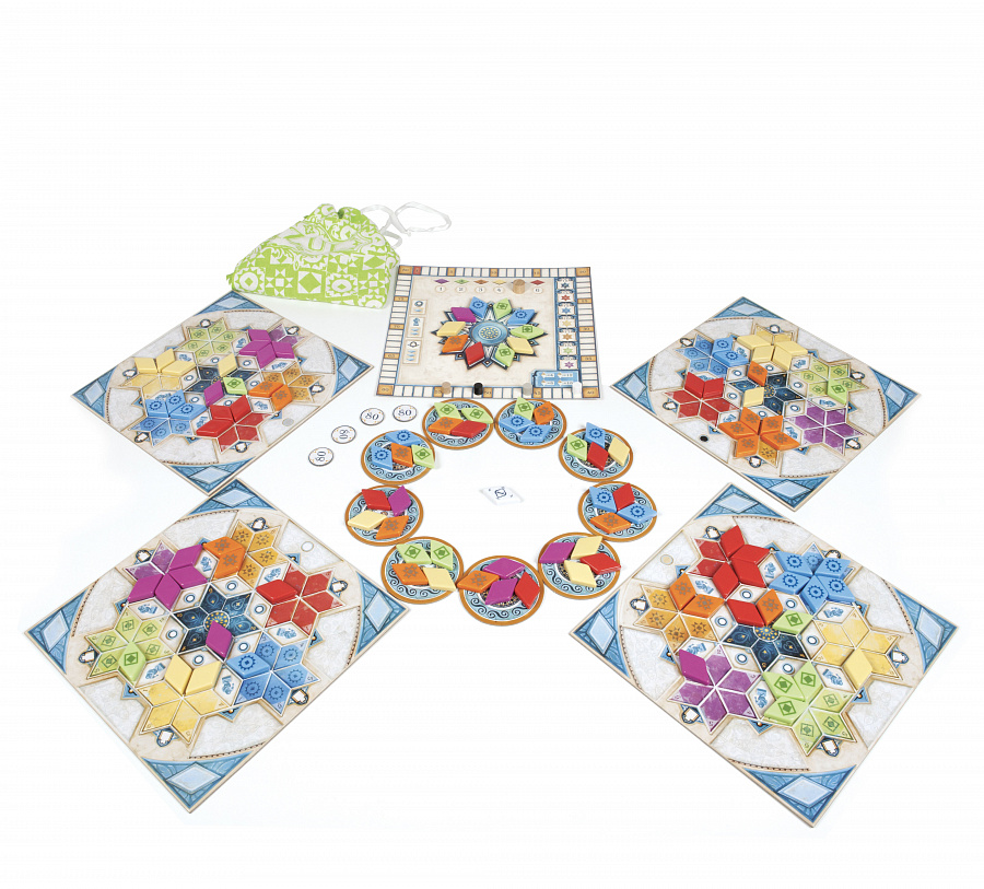 Игровой процесс: в свой ход игрок берет все плитки одного цвета с одного из складов фабрики и, если повезет, одну плитку-джокер. Цвет джокера меняется каждый раунд. Цель – собрать прекрасные узоры, получая победные очки за каждую плитку. Каждая соседняя плитка приносит больше очков, однако и требует больших затрат.