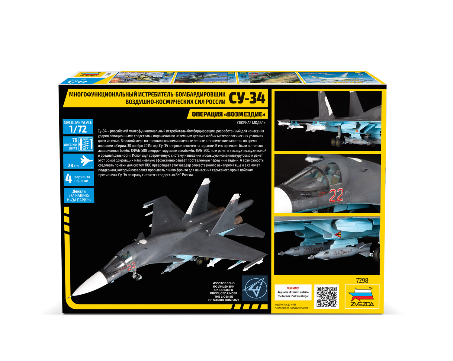 Историческая справка: Су-34 — российский многофункциональный истребитель - бомбардировщик, разработанный для нанесения ударов авиационными средствами поражения по наземным целям в любых метеорологических условиях днём и ночью. В полной мере он проявил свои великолепные лётные и технические качества во время операции в Сирии.
