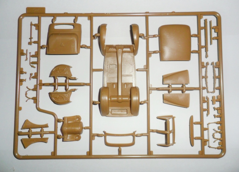 Длина модели 111мм, 129 деталей для автомобиля и 46 деталей для фигур, 4 варианта декалей.