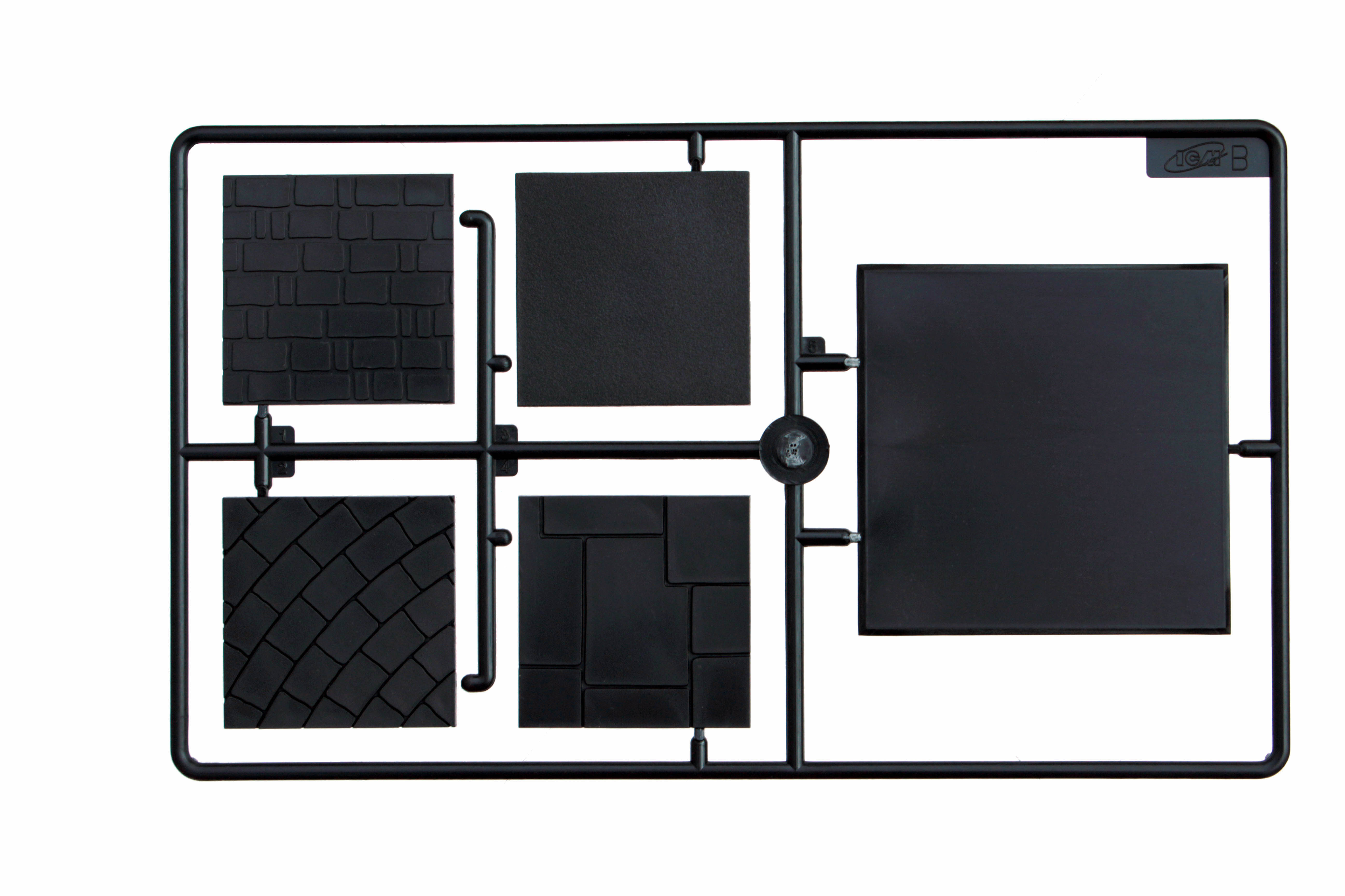 Фигурка прекрасно детализирована, в комплекте сборный квадратный постамент из чёрного пластика с четырьмя вариантами мостовой.