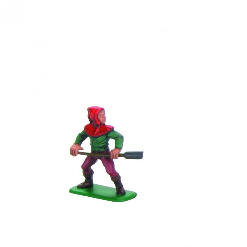 Набор деталей из пластмассы для сборки 3 пушек, 10 пеших фигур и 2 лошадей.