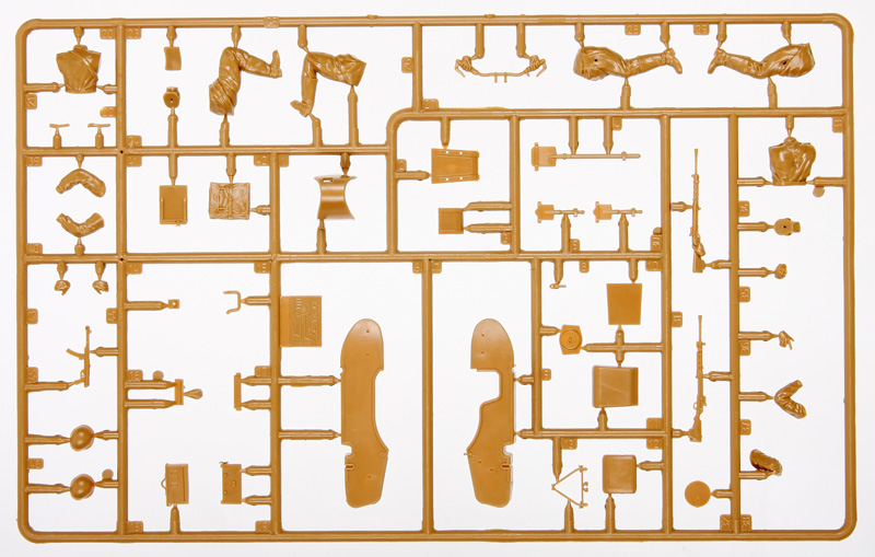 Набор деталей для сборки одной модели мотоцикла и 4 фигурок солдатиков.