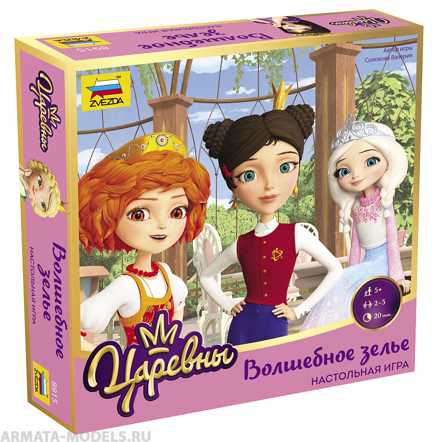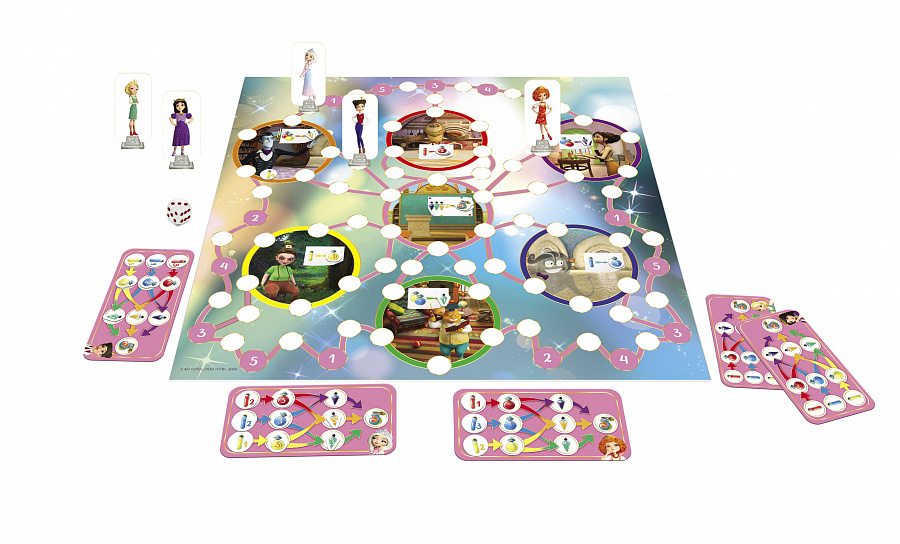 Игроки будут бросать кубик, передвигать фишку своей царевны по игровому полю и собирать ингредиенты Волшебного зелья. Необходимо рассчитывать наилучший маршрут для того, чтобы завершить цепочку последовательных экспериментов и собрать зелье раньше всех!