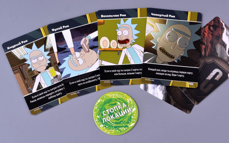 Игроки начинают только со своими волнами гения, но по ходу игры они будут получать новые, более мощные карты в свою колоду. Цель каждого из игроков – победить как можно больше членов Совета Риков (и, конечно же, Злого Рика!).