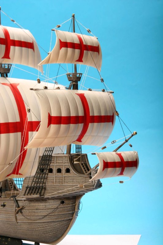 Модель корабля 16 века, на кораблях такого класса конкистадоры отправлялись покорять земли Нового Света. Корабль мог принять на борт до 900 тонн груза при водоизмещении 1600 тонн и мог перевозить 600-700 вооруженных человек. Для своего времени этот корабль был хорошо вооружен, на него устанавливалось 10 корабельных пушек и фальконетов.