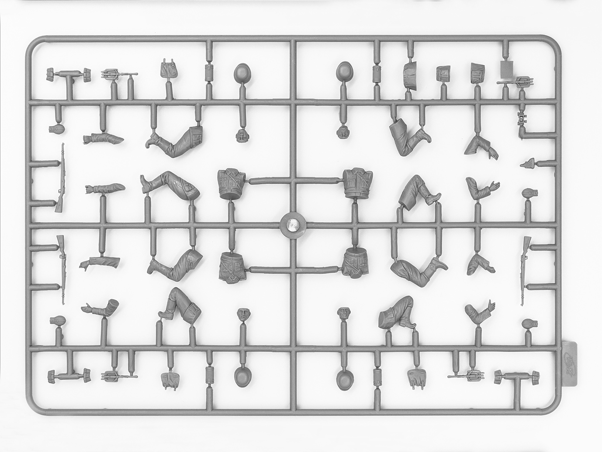 Комплект пластиковых деталей для сборки модели пушки Pak 36(r) и 4 фигур.
