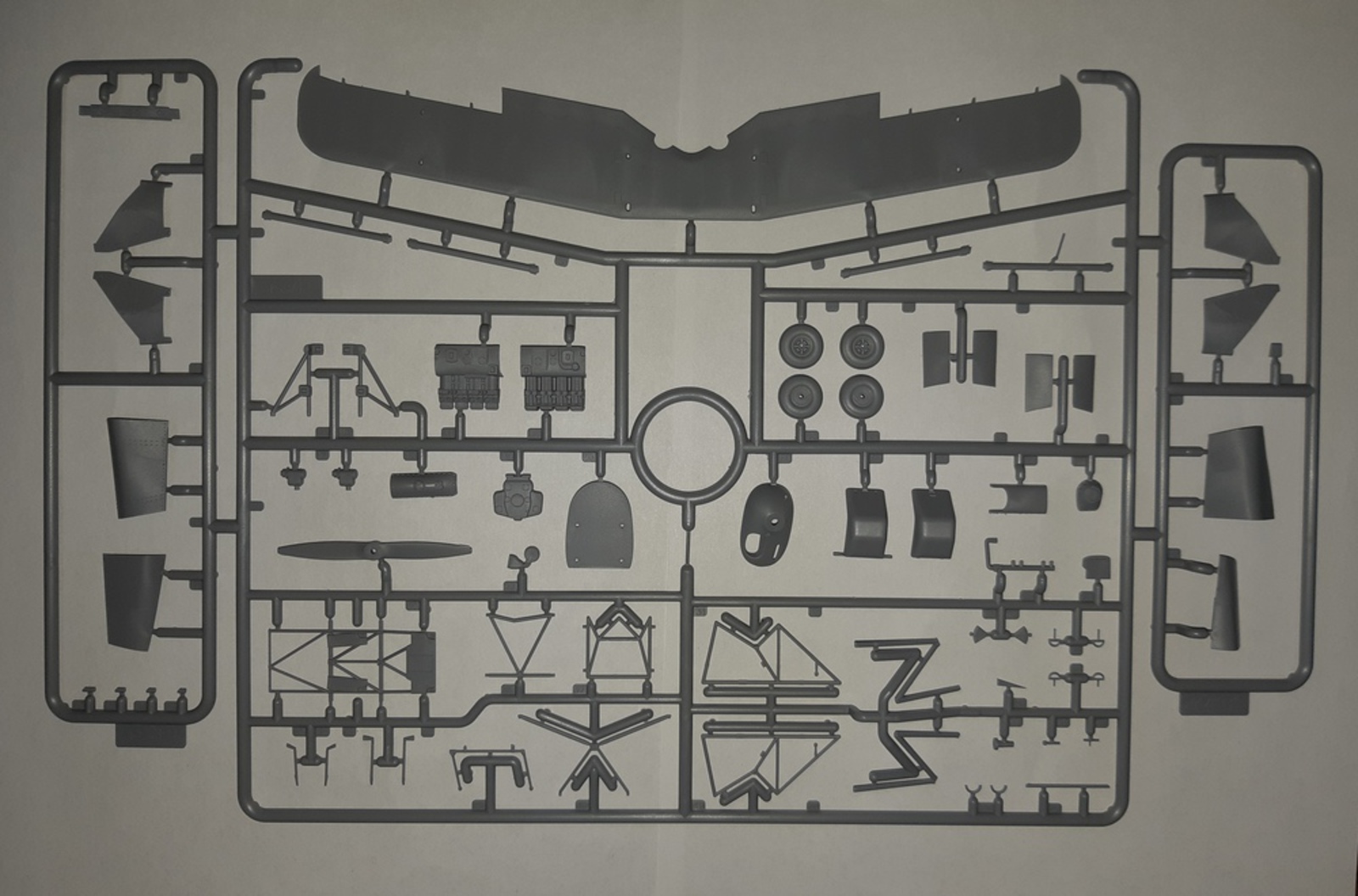 Длина модели 208 мм, размах крыльев 231 мм, 92 детали, 3 варианта декалей. Подставка в комплект не входит.