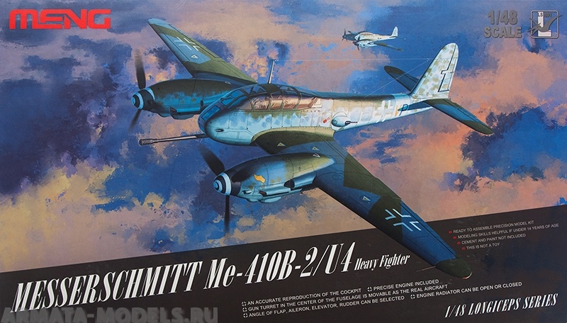 Messerschmitt Me 410 прозванный "Hornisse" (Шершень) был немецким тяжелым истребителем и скоростным бомбардировщиком Второй мировой войны. Разрабатывался на основе Me 210 и оснащался более мощным двигателем Daimler-Benz DB 603A, существенно улучшавшим его характеристики. На самолеты модификации Me410B-2/U4 устанавливалась 50мм пушка BK5, из-за который он был прозван "убийцей бомбардировщиков".